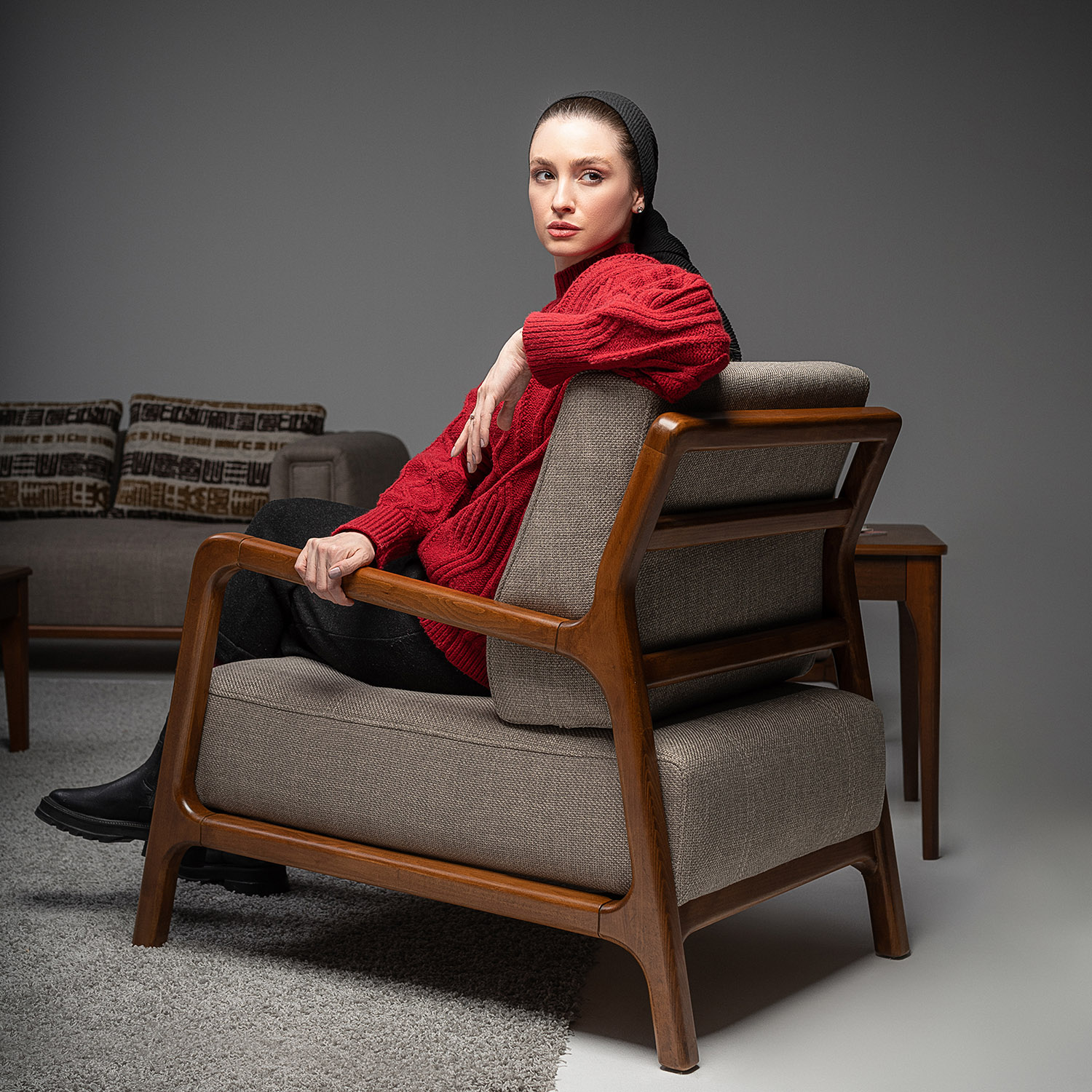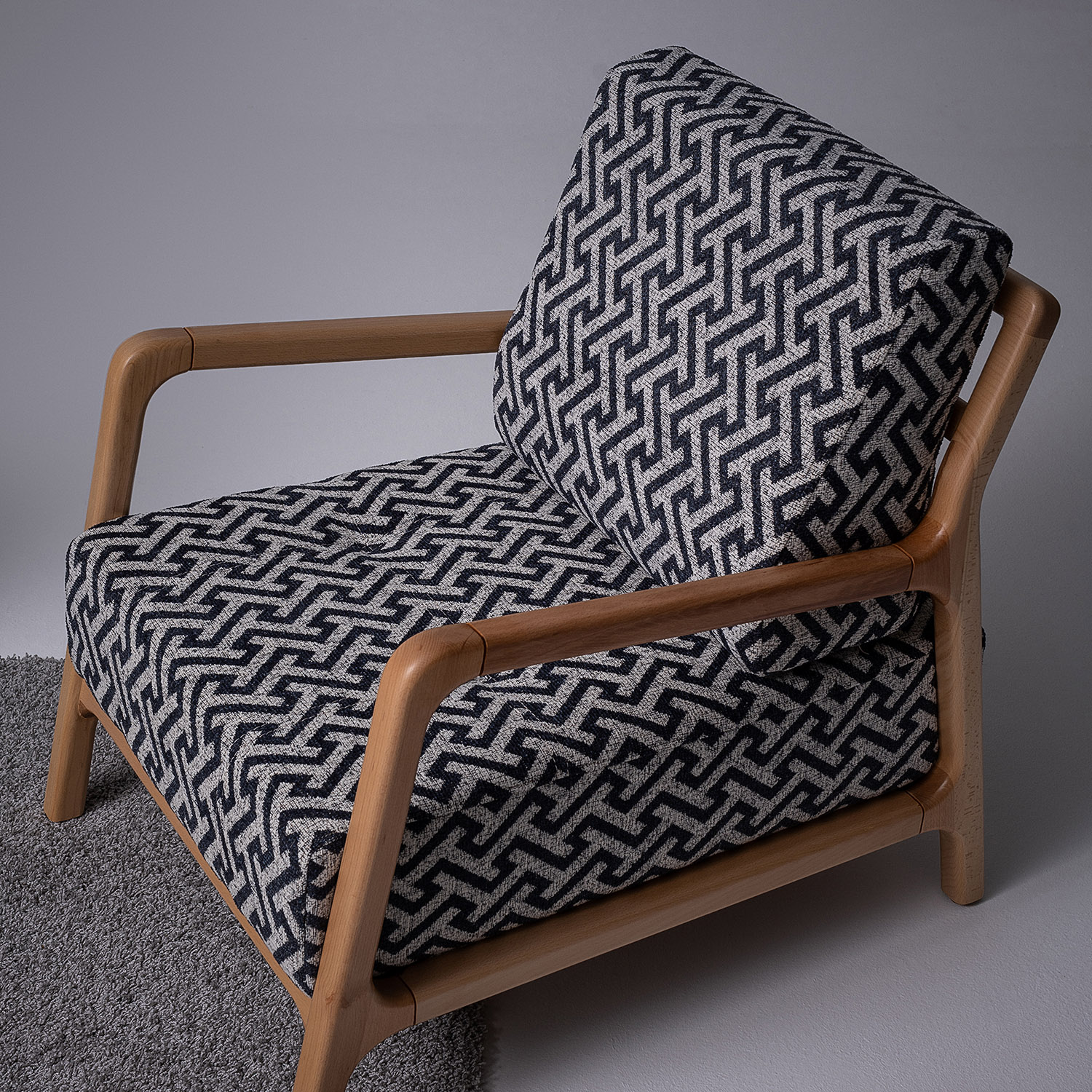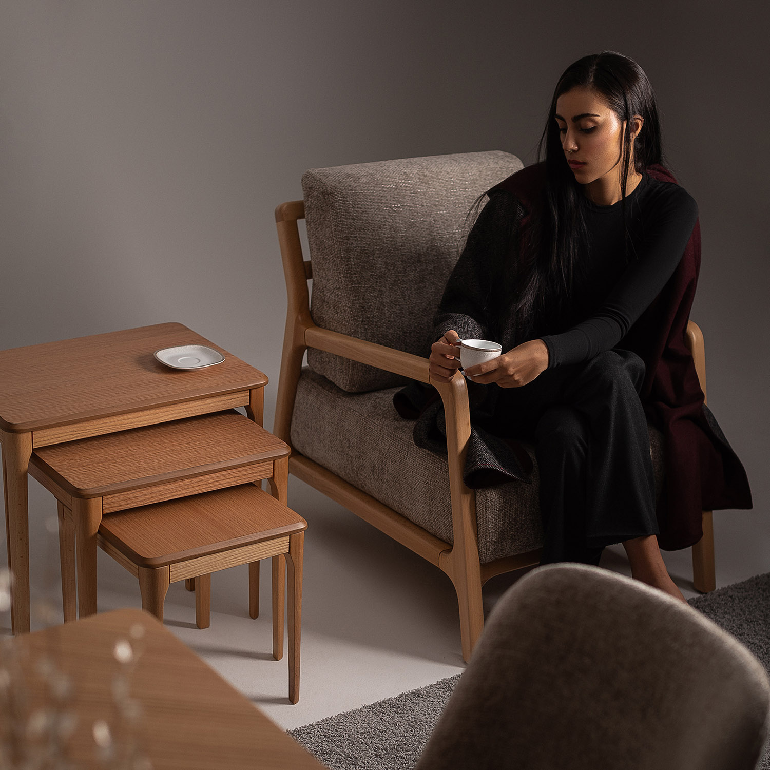 The wood, left honest and expressive, becomes the visual foundation of each piece. It brings an earthy tactility that grounds the room and connects the indoors to the natural world outside. The fabric, offered in diverse tones and textures, allows each composition to be as subdued or expressive as the space demands.