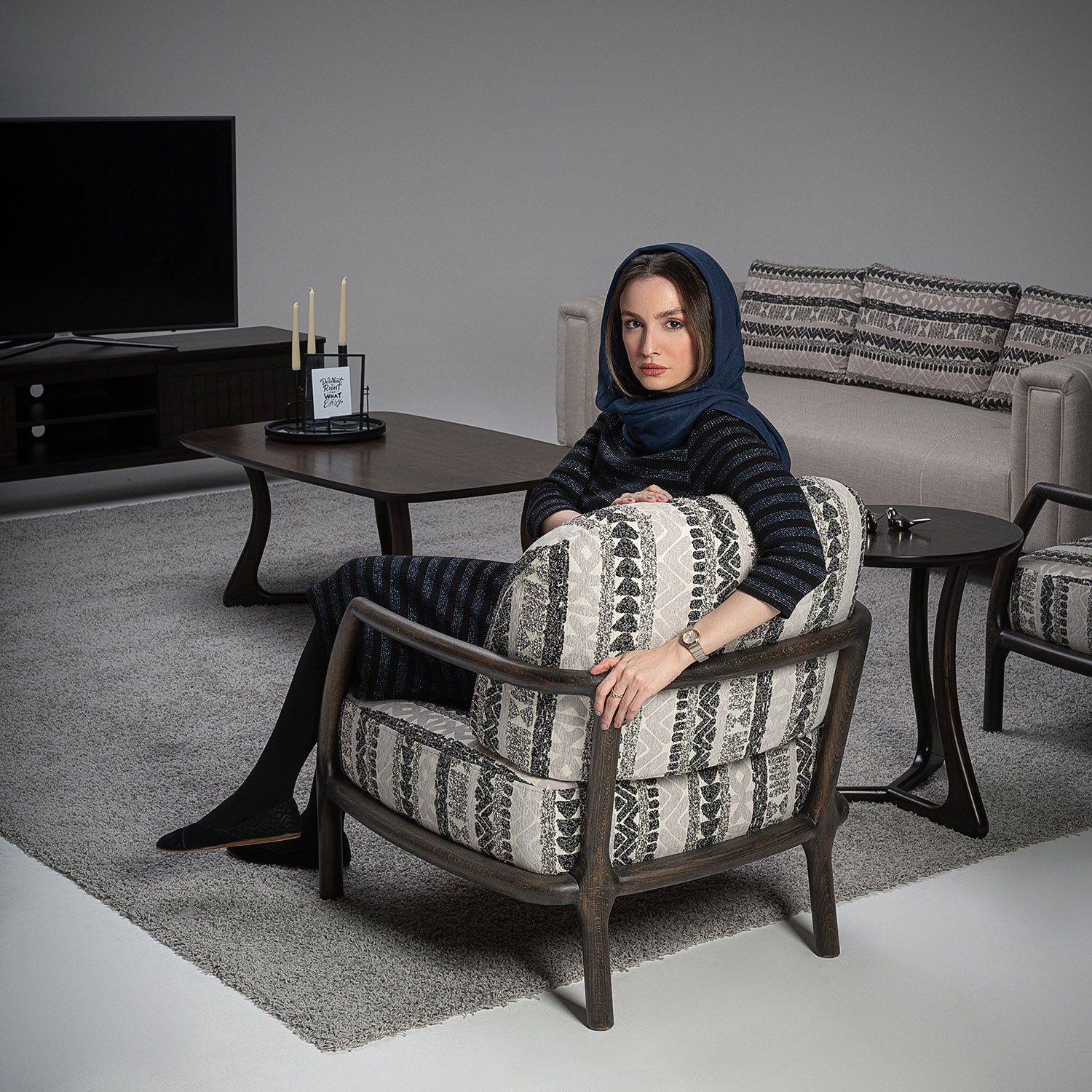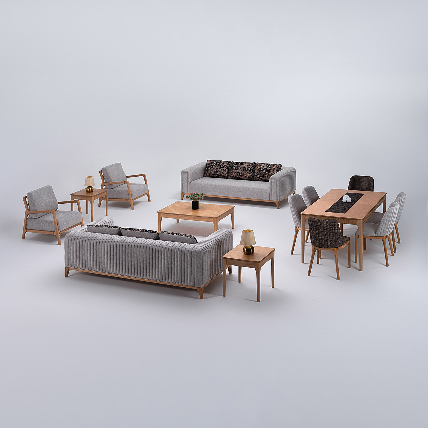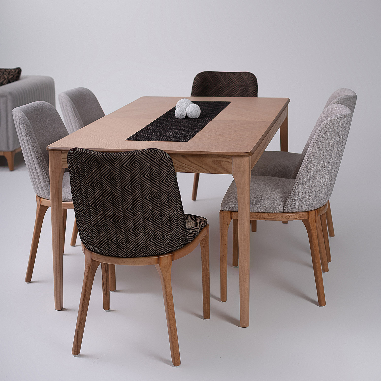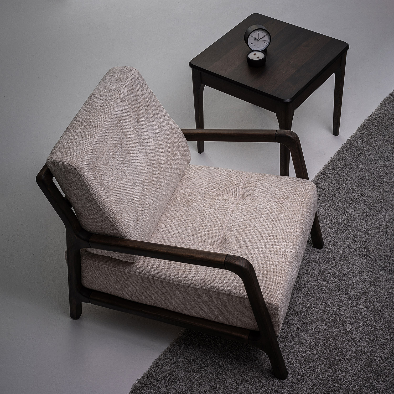 The wood, left honest and expressive, becomes the visual foundation of each piece. It brings an earthy tactility that grounds the room and connects the indoors to the natural world outside. The fabric, offered in diverse tones and textures, allows each composition to be as subdued or expressive as the space demands.